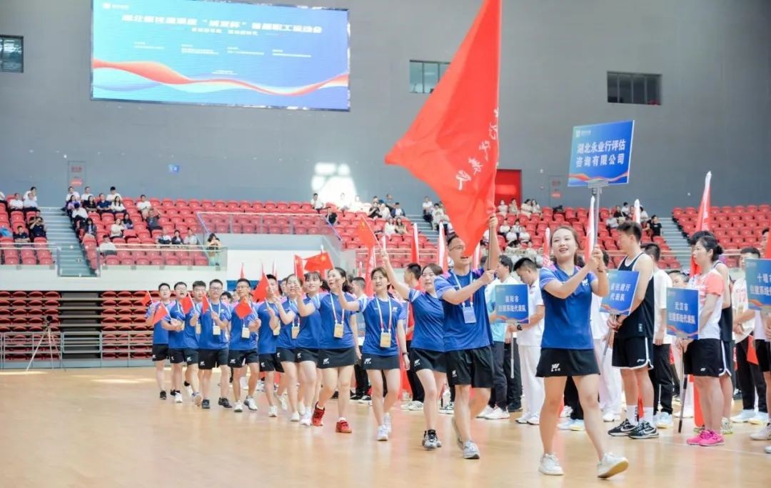 为进一步推进全省住房和城乡建设行业精神文明建设,活跃住建行业广大干部职工业余文化生活,更好的促进住建行业政企之间沟通交流。2023年9月15日,由湖北省住房和城乡建设厅主办的“奋进新征程,建功新时代”“城发杯”首届职工运动会在宜昌奥体中心盛大开幕。 永业行积极报名响应,由永业行副总裁兼鄂西区总经理雷小明带领10余名永业行员工组成的羽毛球队作为企业代表队参加了比赛,以球会友、增进交流。 上午9时,伴随着激昂的《运动员进行曲》开幕式拉开帷幕,运动员代表队迈着整齐的步伐