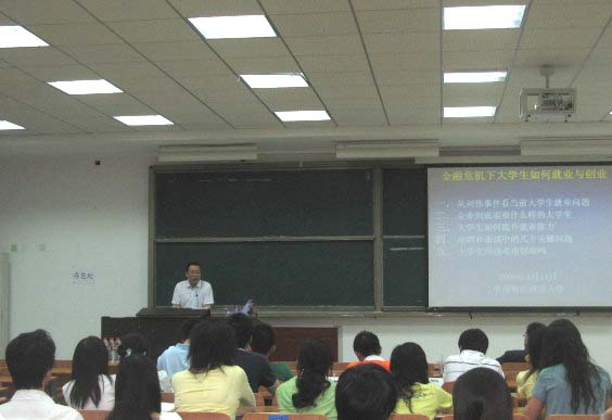 5月14日晚,永业行总裁潘世炳博士应邀到中南财经政法大学,做了主题为《金融危机下大学生就业与创业问题》的讲座。内容包括金融危机下就业现状、企业需要什么样的大学生、大学生如何提高就业能力以及大学生创业问题等,并回答了大家提出的问题。
