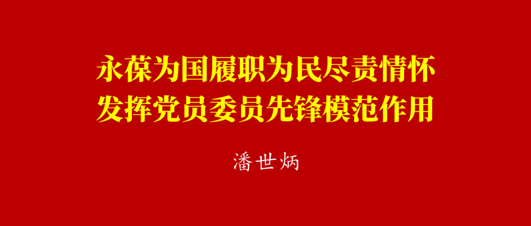 作为一名有33年党龄的共产党员、一名有15年履职经历的政协委员,我时刻牢记习近平总书记关于政协委员“懂政协、会协商、善议政,守纪律、讲规矩、重品行”的要求,坚持为国履职、为民尽责的情怀,充分发挥在本职工作中的带头作用、政协工作中的主体作用、界别群众中的代表作用,以实际行动诠释党员委员的责任担当。