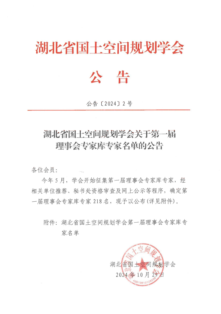 近日,湖北省国土空间规划学会公布《湖北省国土空间规划学会关于第一届理事会专家库专家名单的公告》(公告〔2024〕2号),永业行董事长潘世炳等12人入选专家库。